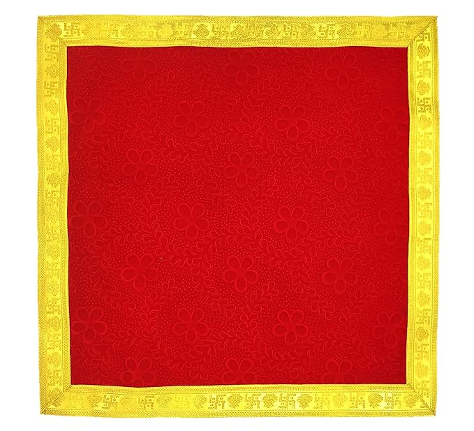 A red cloth adorns the chowki, symbolizing Shakti (divine feminine power).